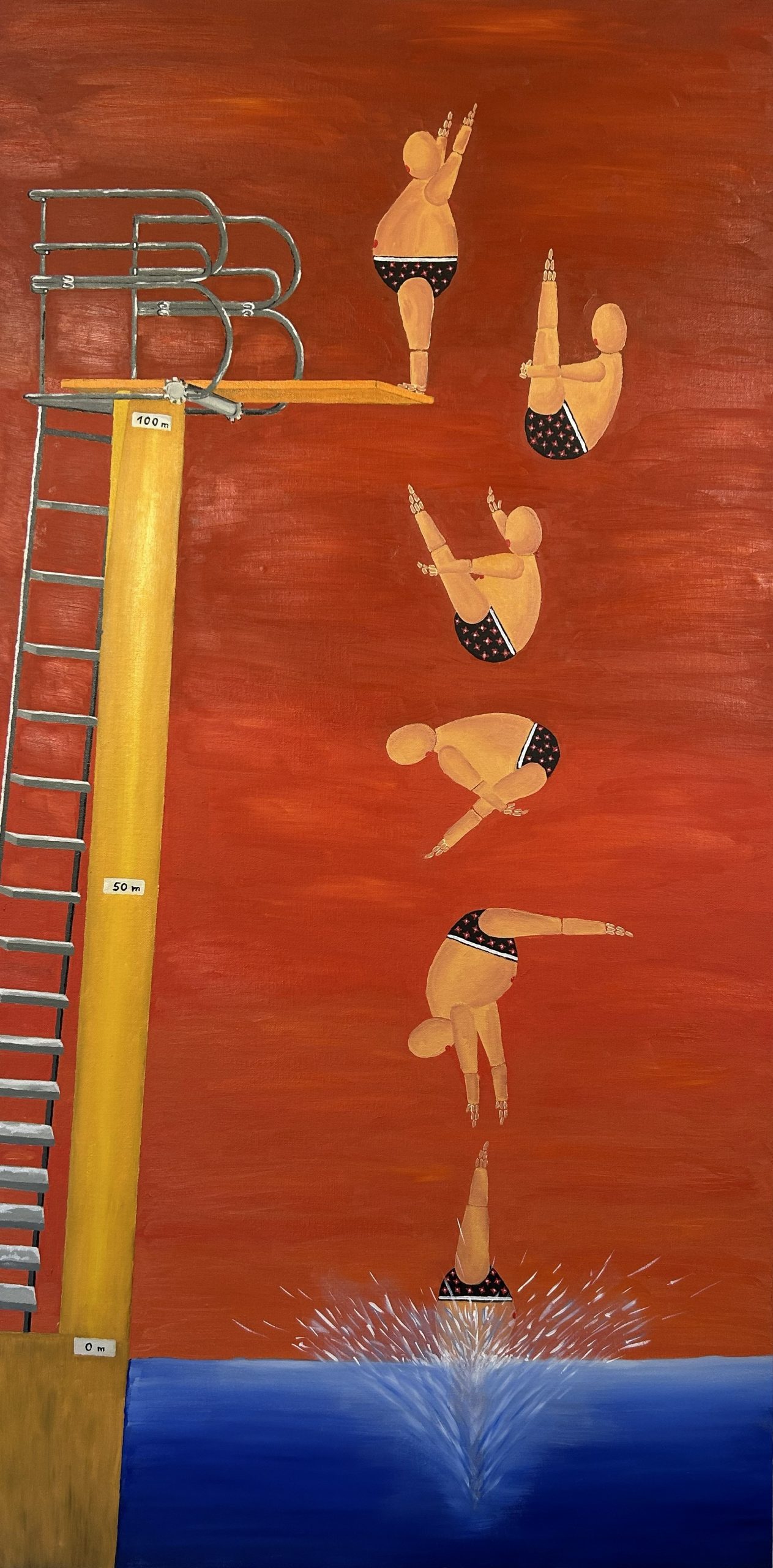 Der kleine Dicke Turmspringer Salto„Der kleine Dicke Turmspringer Salto“ (Oktober 2025) Öl auf Leinwand, 60 × 120 cmVerfügbar – Preis auf Anfrage