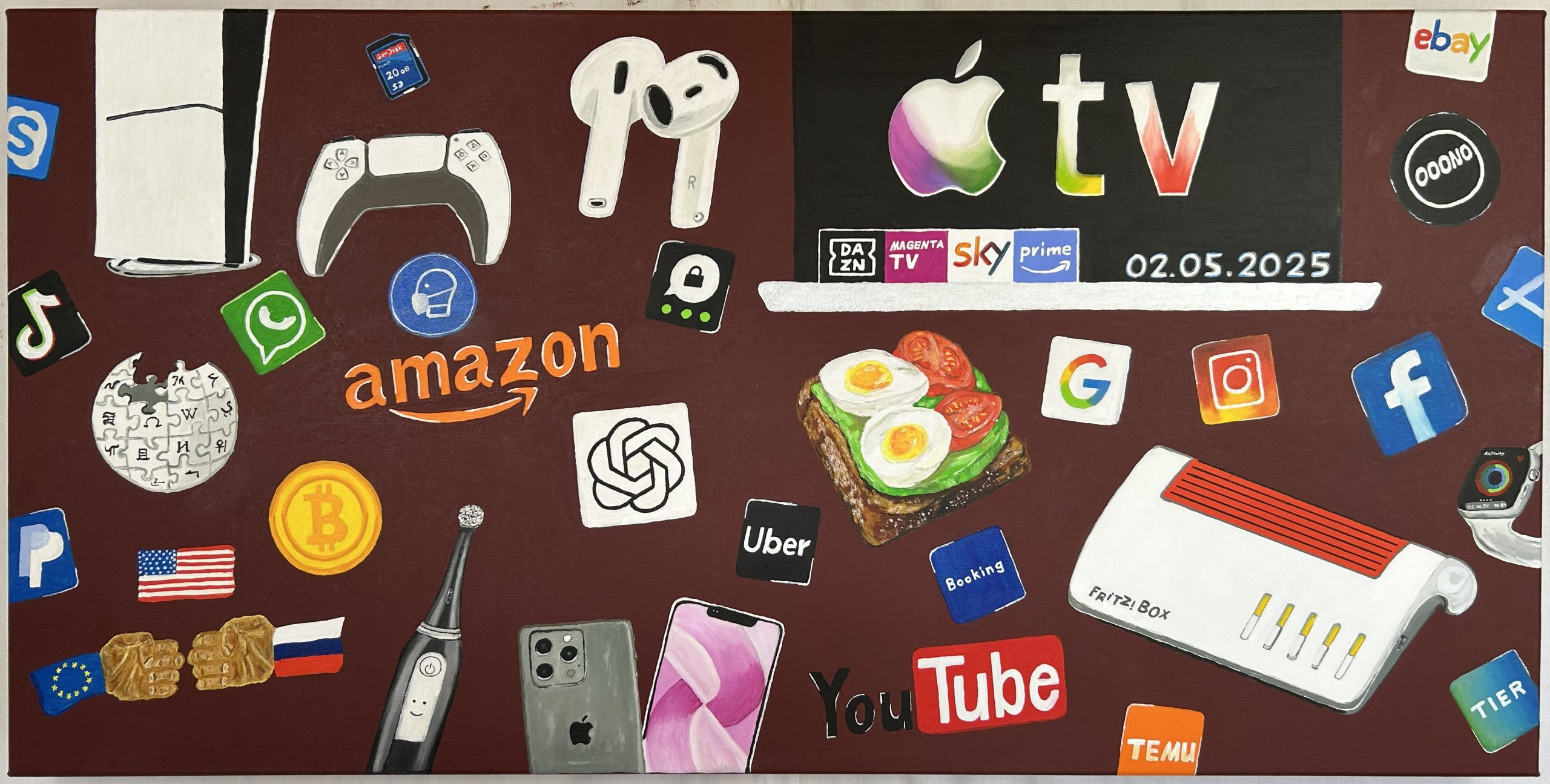 Die 2025 ziger „Die 2025 ziger“ (März 2026) Öl auf Leinwand, 120 x 60 cmVerfügbar – Preis auf Anfrage